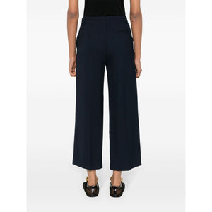 navy blue cady texture belt loops pressed crease two diagonal pockets to the sides rear welt pocket straight leg cropped concealed fly and button fastening Wide-leg trousers Size and Fit - This piece fits true to size. We recommend you get your regular size. Model is 1,75m / 5ft 8in wearing size 40 (IT)