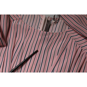 Ermanno Scervino Pink Stripes Silk Long Sleeves Midi Dress