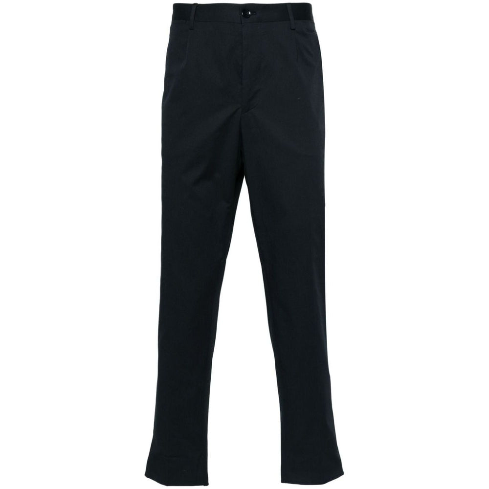 navy blue stretch-cotton slim cut tapered leg belt loops two diagonal pockets to the sides two rear button-fastening pockets front button and zip fastening Cotton trousers Size and Fit - This piece fits true to size. We recommend you get your regular size. Model is 1,84m / 6ft 1in wearing size 48 (IT)