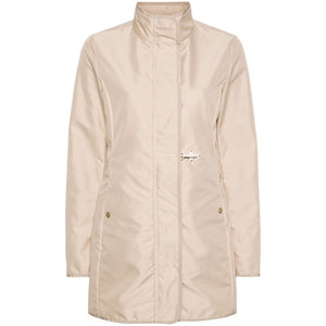 medium beige shell water-repellent grosgrain trim stand-up collar long sleeves two press-stud fastening side pockets unlined straight hem hook fastening front press-stud and two-way zip fastening Virginia Coat overcoat Size and Fit - This piece fits true to size. We recommend you get your regular size. Model is 1,75m / 5ft 8in wearing size S