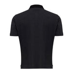 Fendi black short sleeve polo, small black writing with contrasting fluorescent yellow letter and tone-on-tone embroidered logo.