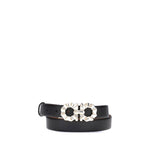 Ferragamo’s Gancini reversible Belt embodies the brand’s style with delicate femininity. Its two-tone, reversible design offers unparalleled versatility, allowing you to change your look with a simple gesture. The buckle, unmistakable Gancini style, is not only an emblem of Ferragamo, but features a worked and shaped shape with pleats that recall the softness of the fabric, adding a unique and sophisticated detail. Being adjustable in length, it adapts perfectly to your body and style, always ensuring a flawless fit.