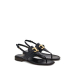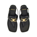 black lambskin leather lining gold-tone hardware Gancini buckle thong strap side buckle fastening branded leather insole leather sole Gancini leather thong sandals Size and Fit - Heel 0,6 in / 1,5 cm