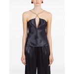 black satin finish gold-tone hardware cut-out detailing scoop back twisted shoulder straps crossover neck slip-on style Satin sleeveless top Size and Fit - This piece fits true to size. We recommend you get your regular size. Model is 1,75m / 5ft 8in wearing size 40 (IT)