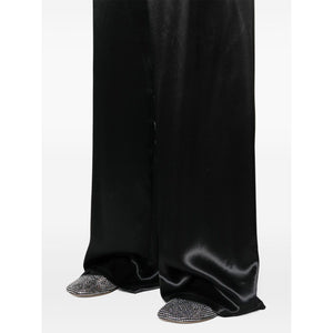 black satin finish crepe texture high-waisted elasticated waistband wide leg straight hem long length Satin wide leg trousers Size and Fit - This piece fits true to size. We recommend you get your regular size. Model is 1,75m / 5ft 8in wearing size 40 (IT)