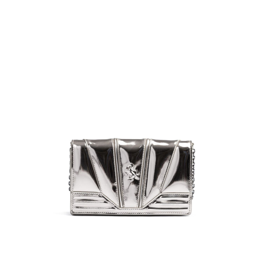 Ferrari Metal Silver GT patent leather bag with chain
