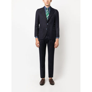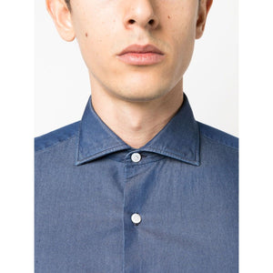 navy blue cotton spread collar front button fastening long sleeves buttoned cuffs rear curved hem Napoli cotton shirt