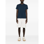 navy blue cotton jersey texture round neck short sleeves straight hem Cotton t-shirt Size and Fit - This piece fits true to size. We recommend you get your regular size. Model is 1,84m / 6ft 1in wearing size M