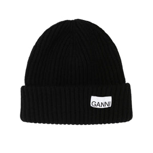 Ganni Oversized Wool Rib Knit Beanie