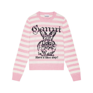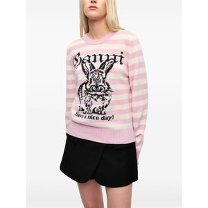 pink crew neck long sleeves ribbed trim Bunny wool crewneck jumper Size and Fit - .