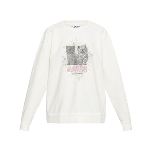 white cotton jersey fleece crew neck drop shoulder long sleeves graphic print to the front logo print to the front ribbed cuffs and hem We've partnered with Good On You — an independent agency that rates how brands perform in relation to their impact on the planet, people and animals, with a multi-criteria rating simplified to a five points scale. In order to be awarded our conscious label, larger brands need to score a minimum of four out of five ('Good'), while smaller brands must score at least three out of five ('It's A Start'). This item comes from a brand rated three out of five ('It's A Start') by Good on You at the time it was added on FARFETCH. Please note, this is a brand-level rating and does not guarantee that this product is made with conscious materials. Learn more about what makes a product Conscious on our Conscious Criteria page Kittens print cotton sweatshirt Size and Fit - This piece fits true to size. We recommend you get your regular size. Model is 1,75m / 5ft 8in wearing size S