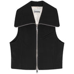 black recycled polyester crepe texture zip fastening sleeveless straight hem This item is made from at least 50% recycled or upcycled materials. For recycled synthetic clothing products, we highly recommend using a microfibre-catching washing bag to ensure that no microplastics that can pollute water are released in the process. Learn more about what makes a product Conscious on our Conscious Criteria page Zipped vest Size and Fit - This piece fits true to size. We recommend you get your regular size. Model is 1,75m / 5ft 8in wearing size 36 (FR)