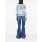 blue pinstripe pattern ribbed band collar long sleeves embroidered logo to the front ribbed cuffs and hem Embroidered striped wool sweater Size and Fit - This piece fits true to size. We recommend you get your regular size. Model is 1,75m / 5ft 8in wearing size S