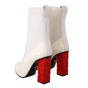 GCDS White Leather Fabric Red Logo Heel Ankle Boots Shoes