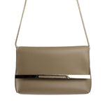Giada milano beige clutch bag with magnetic closure, metal chain shoulder strap