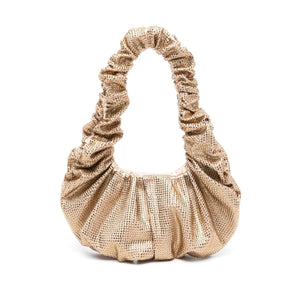 gold-tone glass rhinestone embellishment ruched detailing concealed magnetic fastening single shoulder strap main compartment internal logo tag internal slip pocket gold-tone hardware satin lining Crystal embellished handbag Size and Fit - Width 10,63 in / 27 cm