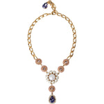 Dolce & Gabbana Gold Brass Crystal Purple Pink Pearl Pendants Necklace