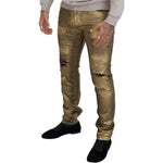这款闪闪发光的金色牛仔裤会让您成为众人瞩目的焦点,彰显了 Dolce & Gabbana 奢华而大胆的设计风格。这款牛仔裤非常适合那些敢于脱颖而出的人,它将棉质的弹性和舒适性与少量氨纶相结合,打造完美贴合的穿着体验。这款牛仔裤在意大利制作,是 MainLine 独家系列中的主打单品,展现了设计师对品质的承诺和对细节的关注,包括独特的徽标装饰。