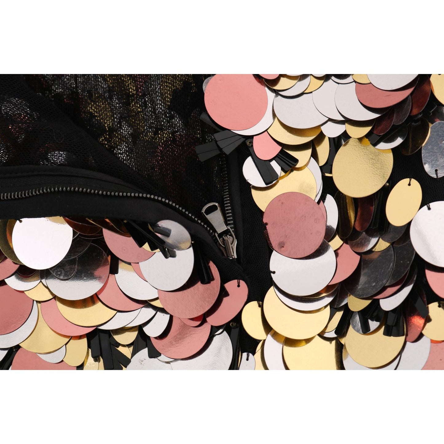 穿上这款 Dolce & Gabbana 高腰铅笔裙,成为众人瞩目的焦点。奢华的黑色面料上点缀着闪亮的银色、青铜色和金色亮片,营造出令人惊叹的色彩和谐感。荷叶边细节增添了一丝优雅,而松紧腰带和弹性内衬确保舒适而不失时尚感。这款裙子在意大利设计和制作,是高超工艺和独特时尚的典范。