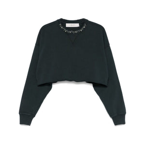 Golden Goose Cropped Cotton Sweatshirt with Crystals on the Front