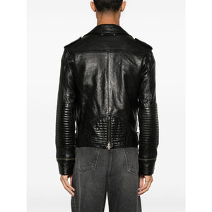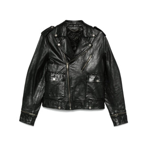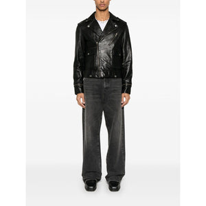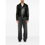 black front zip fastening zip-fastening chest pocket two side flap pockets belt loops Leather jacket Size and Fit - This piece fits true to size. We recommend you get your regular size. Model is 1,84m / 6ft 1in wearing size 48 (IT)