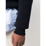 dark blue cotton-blend knitted construction ribbed knit logo patch to the rear crew neck long sleeves logo patch at the sleeve straight hem ribbed-knit edge Logo organic cotton sweater