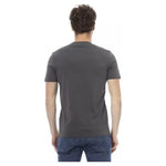 用 Baldinini Trend 短袖 T 恤升级您的休闲衣橱。这款百搭的灰色 T 恤采用精致的圆领和醒目的正面印花,融合了现代风格,同时保持了舒适感。