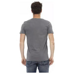 时尚 V 领灰色 T 恤,正面有醒目的印花