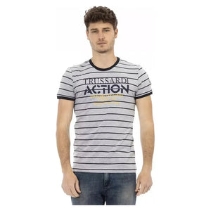 Trussardi Action 的这款精致灰色 T 恤让您轻松时尚,正面印有雅致图案,为您的休闲装增添一丝精致感。采用优质混合材料制成,舒适耐用,是任何衣柜的必备单品。