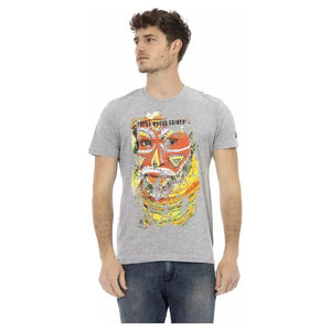 Trussardi Action 的奢华触感让您的休闲装更加精致。这款经典的灰色 T 恤采用柔软的棉和粘胶纤维混纺而成,确保舒适,同时通过醒目的正面印花展示您的风格。这款 T 恤非常适合百搭穿着,可轻松提升您的整体形象。