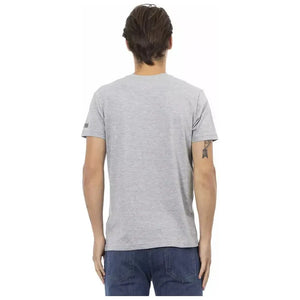 V 领正面印花短袖 T 恤 - 优雅灰色