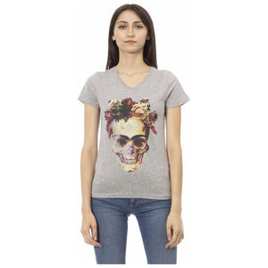 优雅灰色 V 领 T 恤,正面有印花