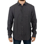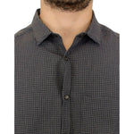 时尚灰色格纹休闲亚麻混纺衬衫