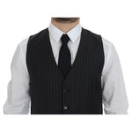 这款 100% 正品 Dolce & Gabbana 灰色条纹正装背心是 MainLine 系列的最新精选,让您尽享精致的典范。单排扣设计,配有可调节的后腰带,确保完美贴合,而全前扣闭合则增添了经典气息。这款背心在意大利精心制作,是永恒风格和奢华的体现。