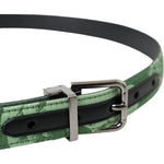 Dolce & Gabbana Green Leather Jacquard Silver Metal Buckle Belt