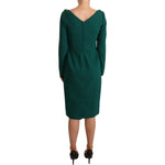 这款 Dolce & Gabbana 的 Emerald 中长连衣裙令人惊艳,让您沉醉于意大利优雅的典范之中。这款华丽的全新连衣裙带有标签,采用柔软奢华的羊毛绉纱精心剪裁而成。其贴身的紧身轮廓与精美的领口和长袖相得益彰。引人注目的孔雀石和水晶扣优雅地装饰着肩线,突出了其精致的设计,带来一丝奢华和高级定制的卓越感。
