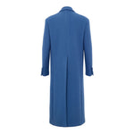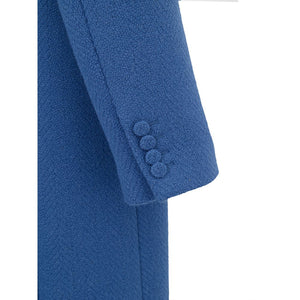 Front fastening with covered fabric buttons, two large side welt pockets, classic collar, back vent. Herringbone fabric workmanship. Internal lining