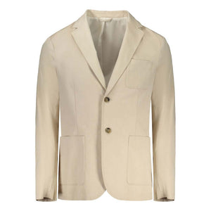 Elevate your wardrobe with this suave Guess Jeans classic jacket. Designed for the man who appreciates a blend of timeless style with a modern twist, this beige long sleeve jacket features ample storage—two distinct outer pockets, a chic small pocket, and an internal pocket for your essentials. Detailed with elegant buttons and the iconic Guess logo, this piece is crafted from a durable combination of cotton and spandex for comfort with a touch of stretch. Perfect for transitioning from day to night with ease.