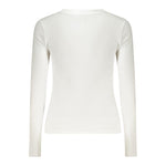 Elevate your wardrobe with the chic elegance of Guess Jeans. This long-sleeved, slim-fit tee embodies a blend of comfort and style, featuring a flattering V-neck and a bold, signature logo print. Crafted with a touch of elastane for a perfect silhouette-hugging fit, it’s a contemporary classic in brilliant white. Perfect for layering or standing alone, this organic cotton piece captures the essence of trendy sophistication.