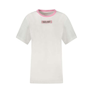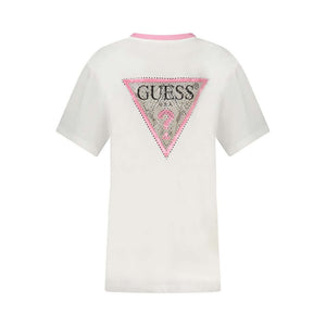 Unveil your daring style and make a bold statement with this Guess Jeans masterpiece. This white maxi t-shirt is embellished with contrasting details that demand attention—sparkling rhinestones and unique applications spell out the Guess legacy. Crafted from organic cotton for a luxe, eco-conscious touch, it’s perfect for those who set trends rather than follow them. Feel the confidence in every thread.