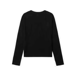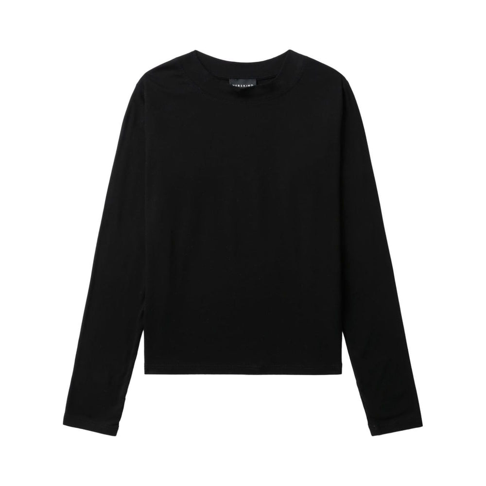 jet black organic cotton blend stretch-design thumb slots round neck long sleeves straight hem This item is made from at least 50% organic materials. Learn more about what makes a product Conscious on our Conscious Criteria page Laura organic cotton top Size and Fit - This piece fits true to size. We recommend you get your regular size. Model is 1,75m / 5ft 8in wearing size S