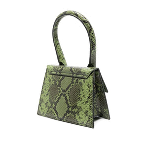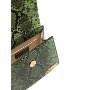 fern green/black calf leather snakeskin effect gold-tone logo lettering foldover top with magnetic fastening single rolled top handle adjustable detachable shoulder strap full lining internal logo patch internal card slot main compartment gold-tone hardware This piece comes complete with a protective dust bag. Le Chiquito Moyen leather handbag Size and Fit - Width 7,09 in / 18 cm