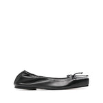 black calf leather smooth grain slip-on style elasticated trim front bow detailing square toe branded leather insole flat leather sole This piece comes complete with a protective dust bag. Les Ballerines Ballet Size and Fit - Heel 1 cm