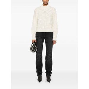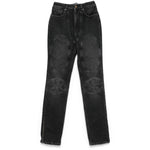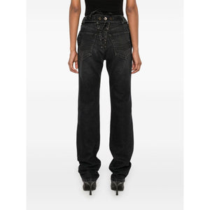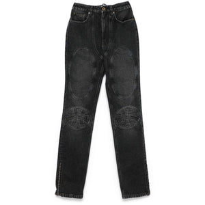 black cotton washed denim padded panels concealed fly and button fastening rear lace-up fastening belt loops waist tabs classic five pockets rear criss-cross straps ankle zips Padded deatils denim jeans Size and Fit - This piece fits true to size. We recommend you get your regular size. Model is 1,75m / 5ft 8in wearing size 27 (WAIST CM)