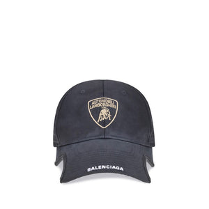 The Lamborghini x Balenciaga Baseball Cap is a bold accessory born from the collaboration between two icons of luxury and design. Featuring embroidered ventilation eyelets on the top, it has a distinctive cut-out visor on both sides and an adjustable tongue with hook-and-loop closure on the back. The Lamborghini Shield motif embroidered on the front completes the look, designed by Balenciaga for Automobili Lamborghini, a symbol of a sporty and exclusive style.