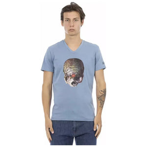 时尚浅蓝色 V 领 T 恤,正面有印花