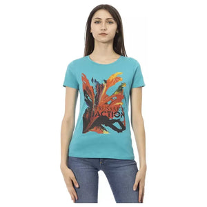 Trussardi Action 的这款时尚舒适的浅蓝色 T 恤可让您的休闲装更具魅力。这款 T 恤采用经典圆领和短袖设计,搭配时尚正面印花,为任何休闲装扮增添一抹轻松精致的气息。