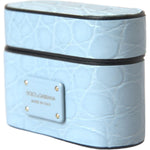 Dolce & Gabbana Light Blue Leather Metal Logo Plaque Airpods Case