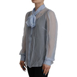 这款奢华的Dolce & Gabbana阿斯科特领衬衫彰显永恒优雅。这款上衣设计精巧,细节精致,正面饰有精致纽扣,袖子很长,非常适合为您的衣橱增添一丝意大利风情。柔软的浅蓝色丝绸面料确保舒适和优雅,是任何时尚鉴赏家的必备单品。