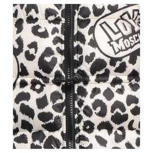 Step out in style with this eye-catching Love Moschino long down jacket, adorned with a bold leopard-themed print and signature logos. Perfect for fashion-forward individuals looking to make a statement while staying cozy. This luxurious piece is a winter wardrobe must-have!